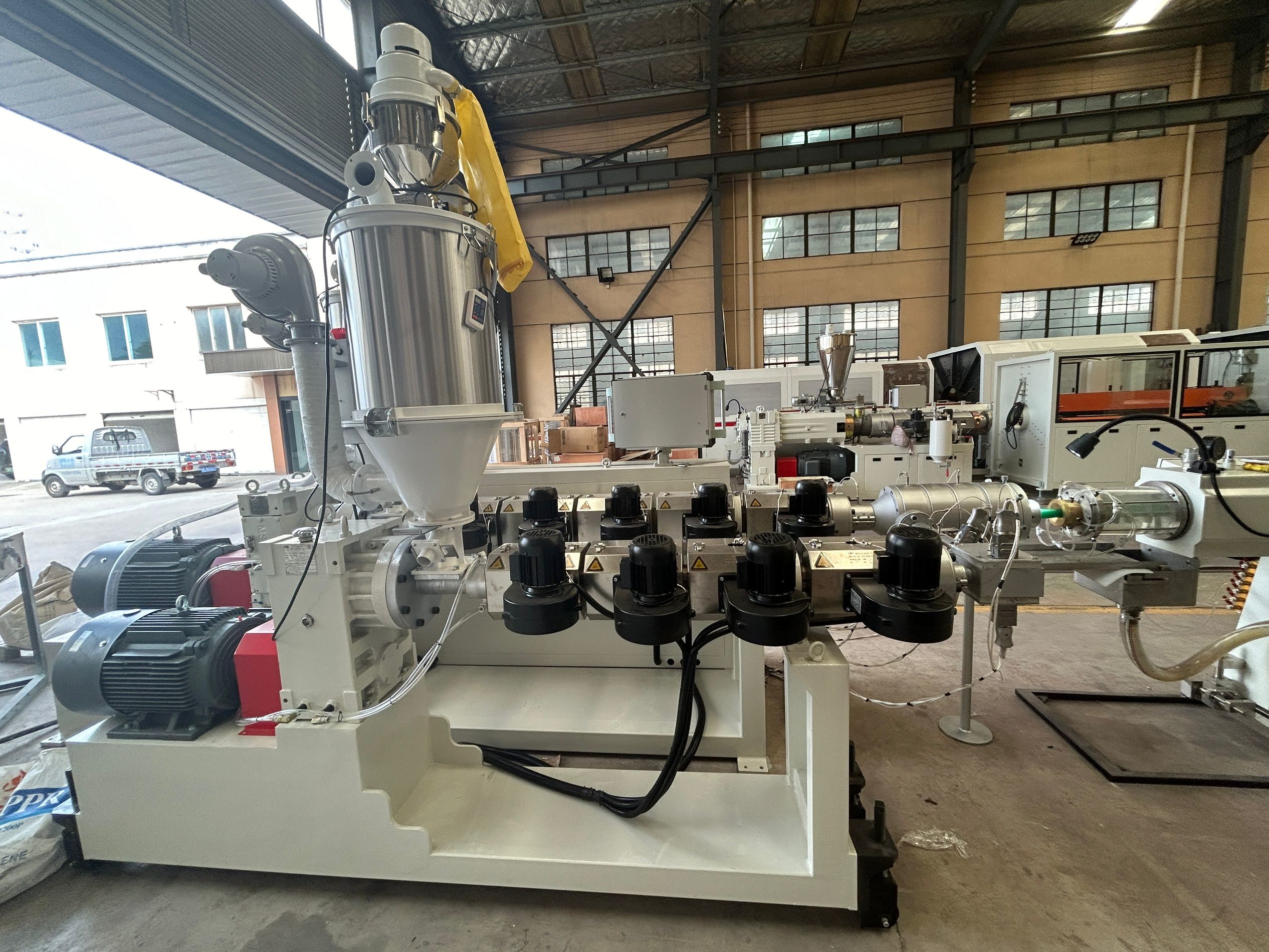 原料 (PPR/PVC ペレット、添加剤) は自動的にホッパーに供給され、均一に混合されます。